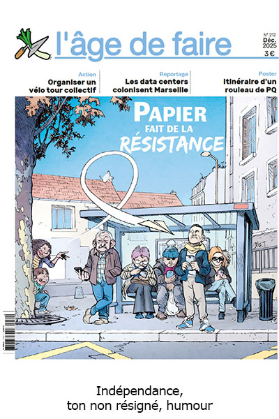 > Nous sommes quatre journalistes à écrire l’essentiel des articles, on fait nos choix en partageant nos réflexions, nos idées pour constituer le journal qui est un mensuel, donc pas attaché à l’actualité brûlante. Le choix éditorial est de faire entendre des voix, peu ou pas entendues, à partir d’initiatives, de luttes locales qui correspondent à des enjeux globaux. Dans le dernier numéro, on évoque les Data Centers sur la région de Marseille et derrière, on pose la question de la consommation énergétique du numérique aujourd’hui. Notre volonté est de faire un magazine sympa à lire, avec un rythme, en abordant tous types de sujets et un ton non résigné, qui se tourne vers ce qui se construit et cela, avec un engagement explicite et une honnêteté dans le traitement des sujets sachant qu’au bout de la plume, il y a un humain avec des opinions. Nos choix éditoriaux explicitent notre engagement, notre regard. On pourrait se dire en résistance, pour reprendre vos propos, mais alors, par rapport à une certaine presse, et à certains points de vue, dont celui de ne plus trouver choquant les propos de l’extrême droite.