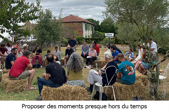 Si le festival au cours du temps a évolué, passant aujourd’hui à un format de cinq journées, les fondamentaux et l’esprit sont toujours là à travers les balades, les causeries, et les échanges. Il s’agit de proposer aux festivaliers de Marciac et aux personnes de passage, un moment presque hors du temps, et de se retrouver en pleine nature ou dans un lieu niché à côté du grand chapiteau, sur le chemin de ronde à Marciac pour parler paysage, arbre, agro-écologie et donner une lecture sociale et économique de l’environnement, sans en occulter les tenants techniques et écologiques. « Notre intention est que l’on vienne ici partager les connaissances, comprendre, s’écouter, se poser les bonnes questions, ne pas être clivant. Quand on nous dit - ah je ne voyais pas ça comme cela — cela fait plaisir d’entendre que l’on participe à ce moment d’échanges dans cette intention. C’est l’esprit de ces journées auxquelles nous tenons ».
